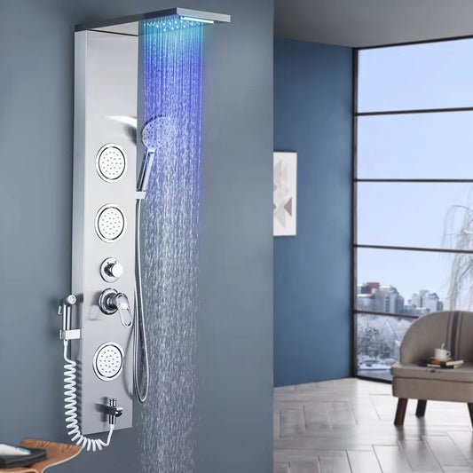 Stainless Steel Waterfall Shower Column Set Wall Mounted Massage Body Spray Head Led Shower Screen-6669