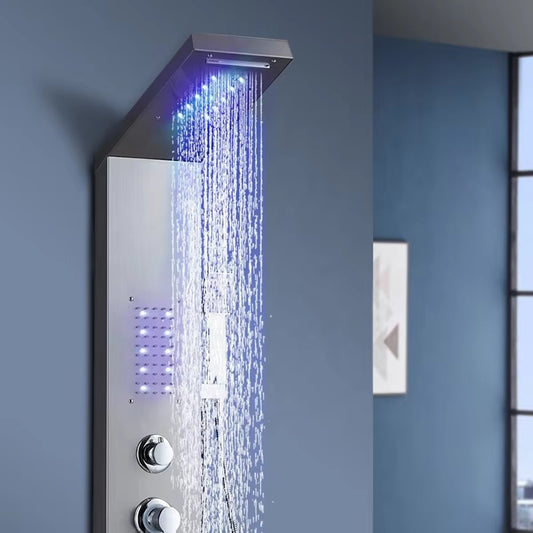 Led Shower Panel Wall Mounted Stainless Steel Waterfall Shower Column Set Massage Shower Head-6672