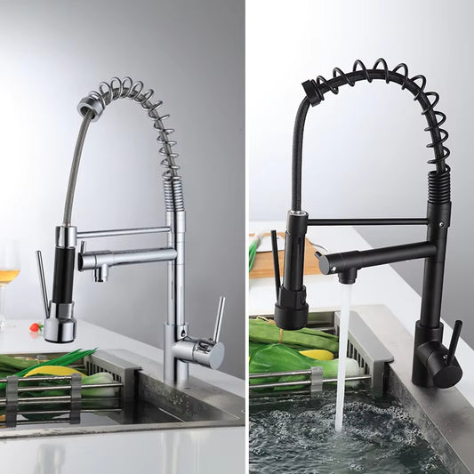 High-End Kitchen Sink Pull-Down Three-Way Double-Handle Faucet-8306