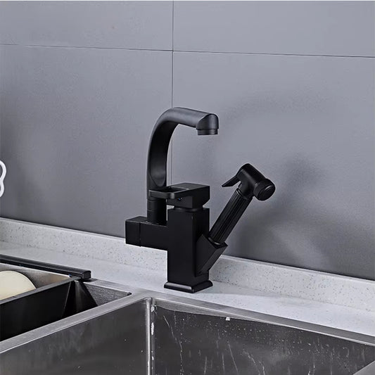 360 Degree Rotating Pull-Out Black Multifunctional Faucet-001