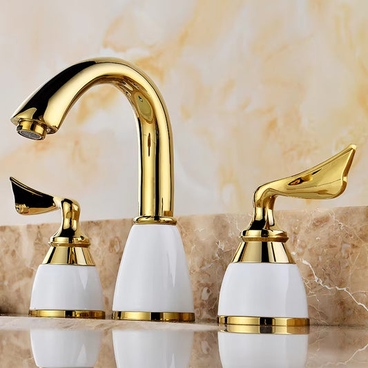High-End Hollow Design Bathroom Basin Golden Faucet-7298