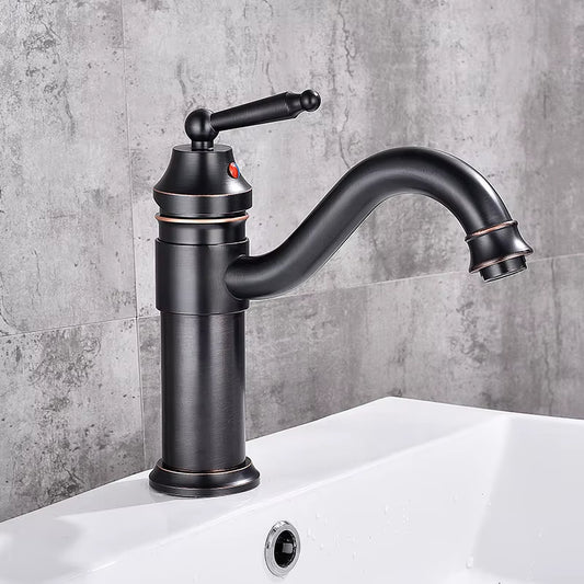 Elegant Black Single Handle Single Hole Basin Sink Hot And Cold Mixing Faucet-7058