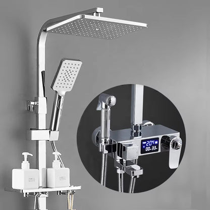 This shower set comes with a thermostatic faucet, allowing users to easily and safely control water temperature. The metering faucet also ensures precise water flow and pressure regulation.