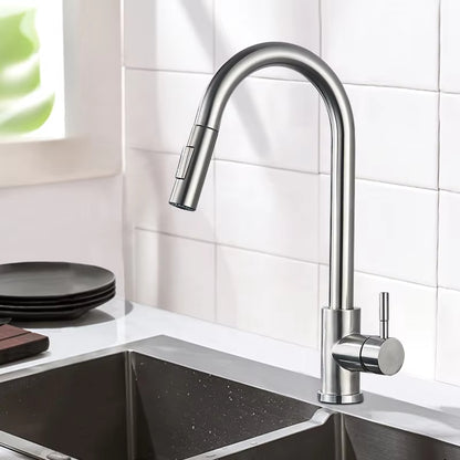 The faucet is equipped with a stretchable spout and uses a high-quality stainless steel hose with good flexibility and durability. Whether it is cleaning the dirt deep in the sink or filling a container far away, it can be easily achieved, completely solving the problem of limited water range of traditional faucets, bringing you an unprecedented convenient experience.