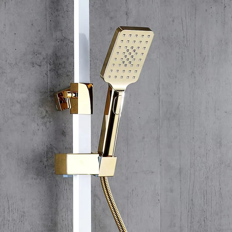 With its contemporary style, white and gold finish, this shower set offers a sophisticated look to any bathroom. The brass body and ceramic valve core materials ensure durability and longevity.