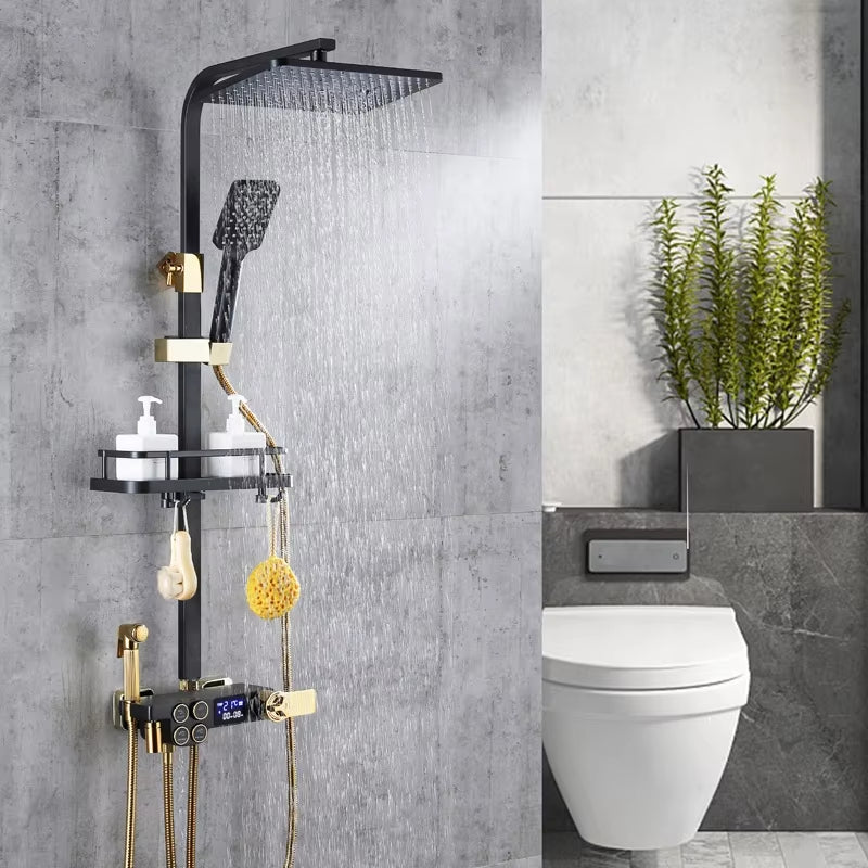 The thermostatic faucet provides precise temperature control, allowing users to adjust the water temperature to their preference, providing a comfortable showering experience.