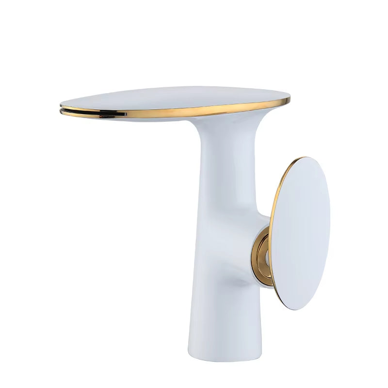 ELEGANT DESIGN: This faucet features both modern and traditional design styles, and its sleek white and gold finish complements any bathroom decor, making it a stylish addition to any space.