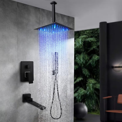 This led shower set has a sleek and modern design with a contemporary style that complements any bathroom decor. The blackened finish adds a touch of sophistication, perfect for high-end hotels, villas, and apartments.